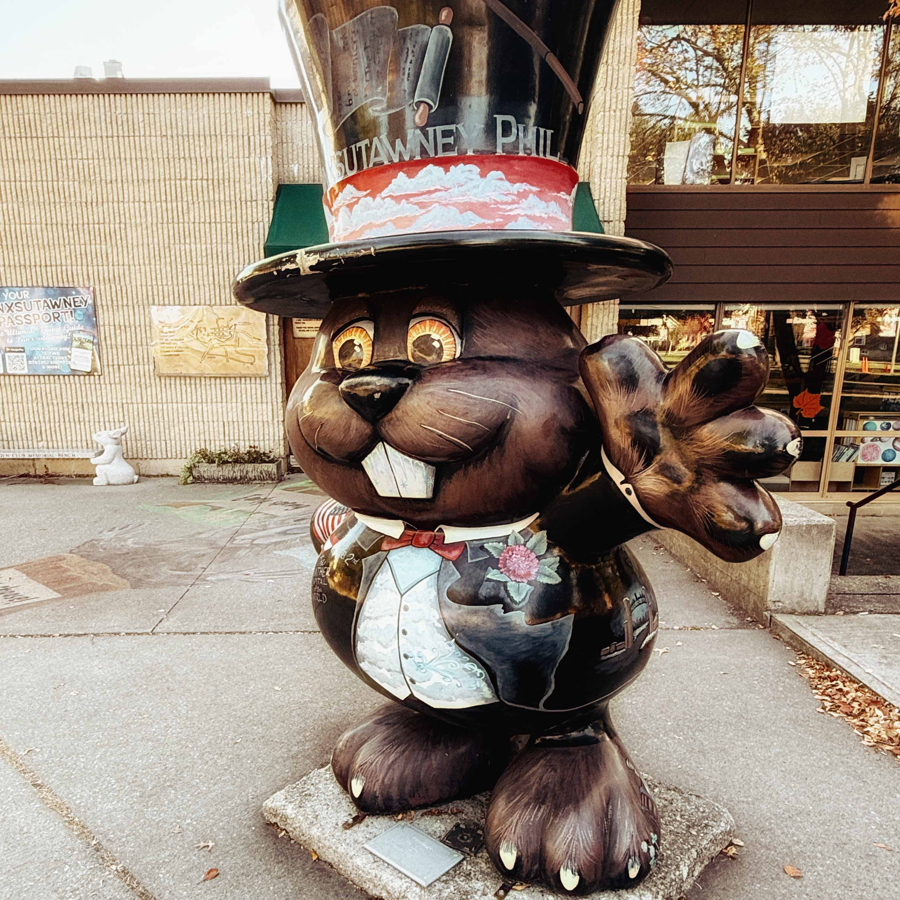 In Punxsutawney, there are over forty six-foot-tall fiberglass groundhog statues located all over town. They are known as Phantastic Phils and are decorated and sponsored by local businesses. During Countdown to Groundhog Day's visits to Punxsutawney over the years, we've tracked down as many of these statues as possible. You can find pictures and information about each of these statues by clicking on the photos below.